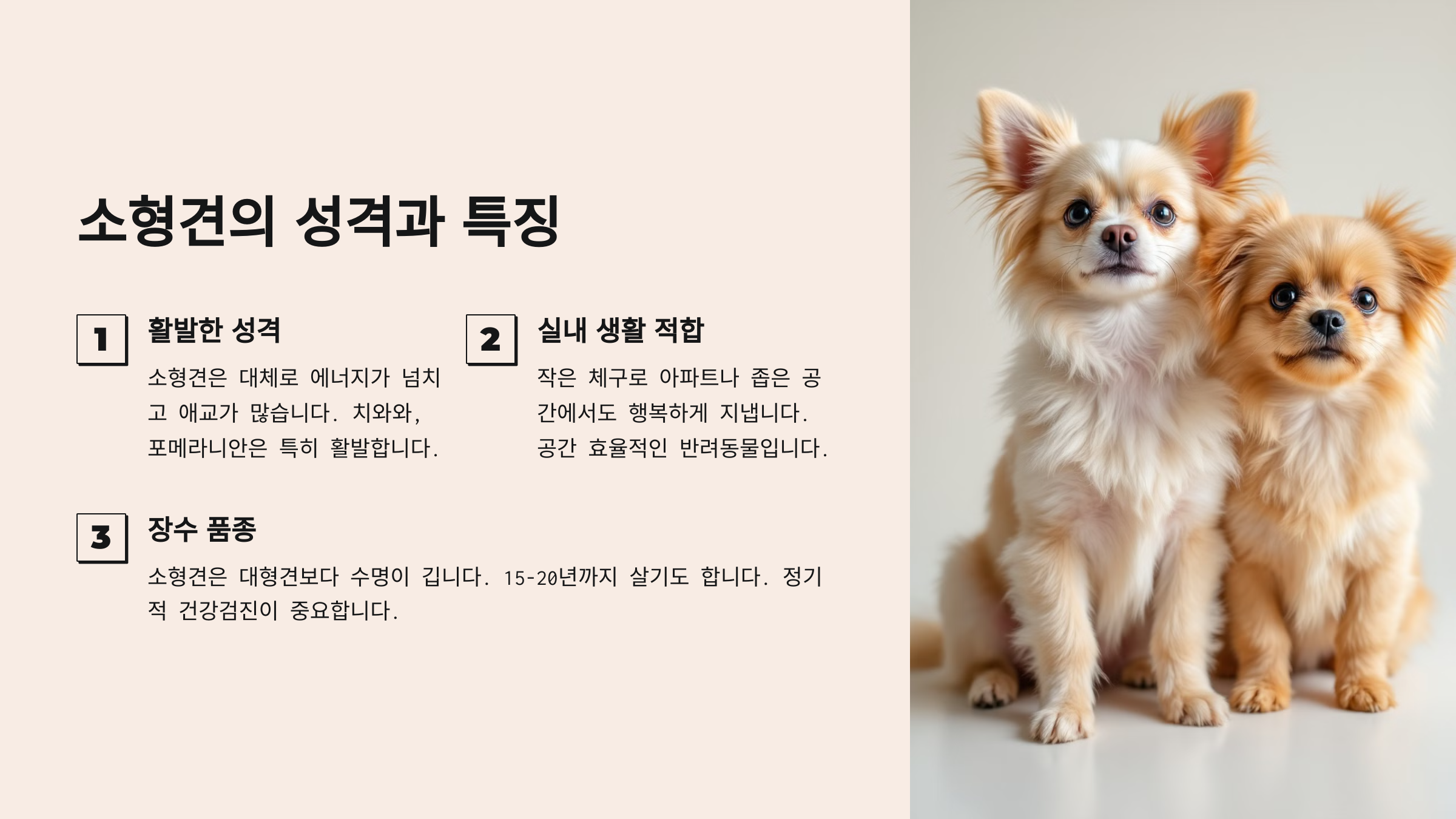 내가 생각했을 때, 소형견은 활발한 성격 때문에 키울 때 재미있고 귀여운 순간이 많지만, 훈련을 소홀히 하면 예상치 못한 문제도 생길 수 있어요.